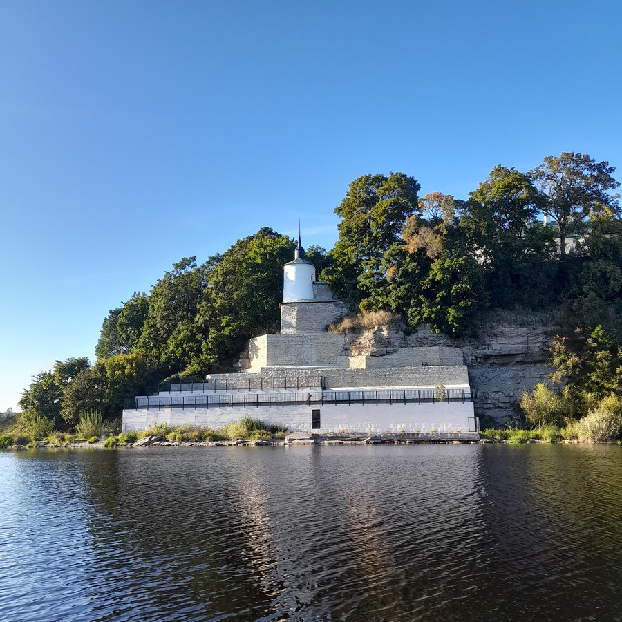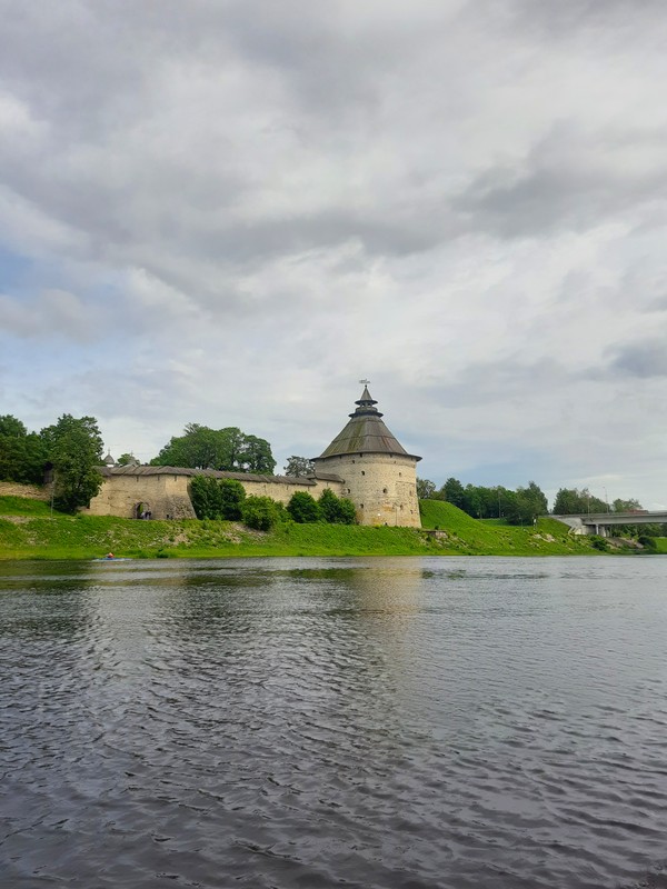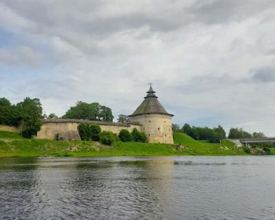 - На обратном пути пройдёте на катере вдоль левого берега Великой и осмотрите выдающиеся памятники средневековой архитектуры: