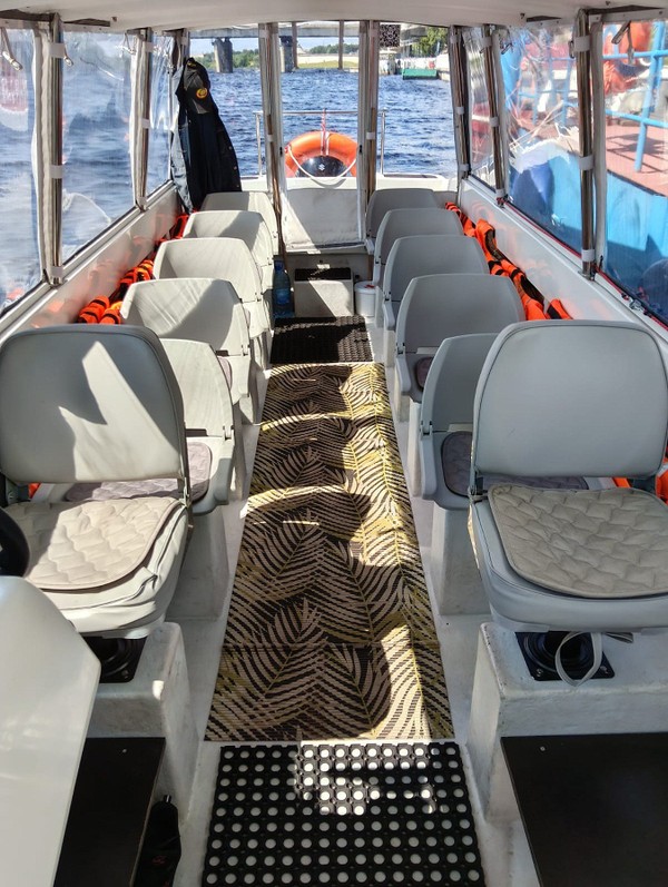 - Речная прогулка проходит на современных 8-метровых катерах шириной 2 метра, которые рассчитаны на 11 пассажиров