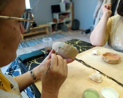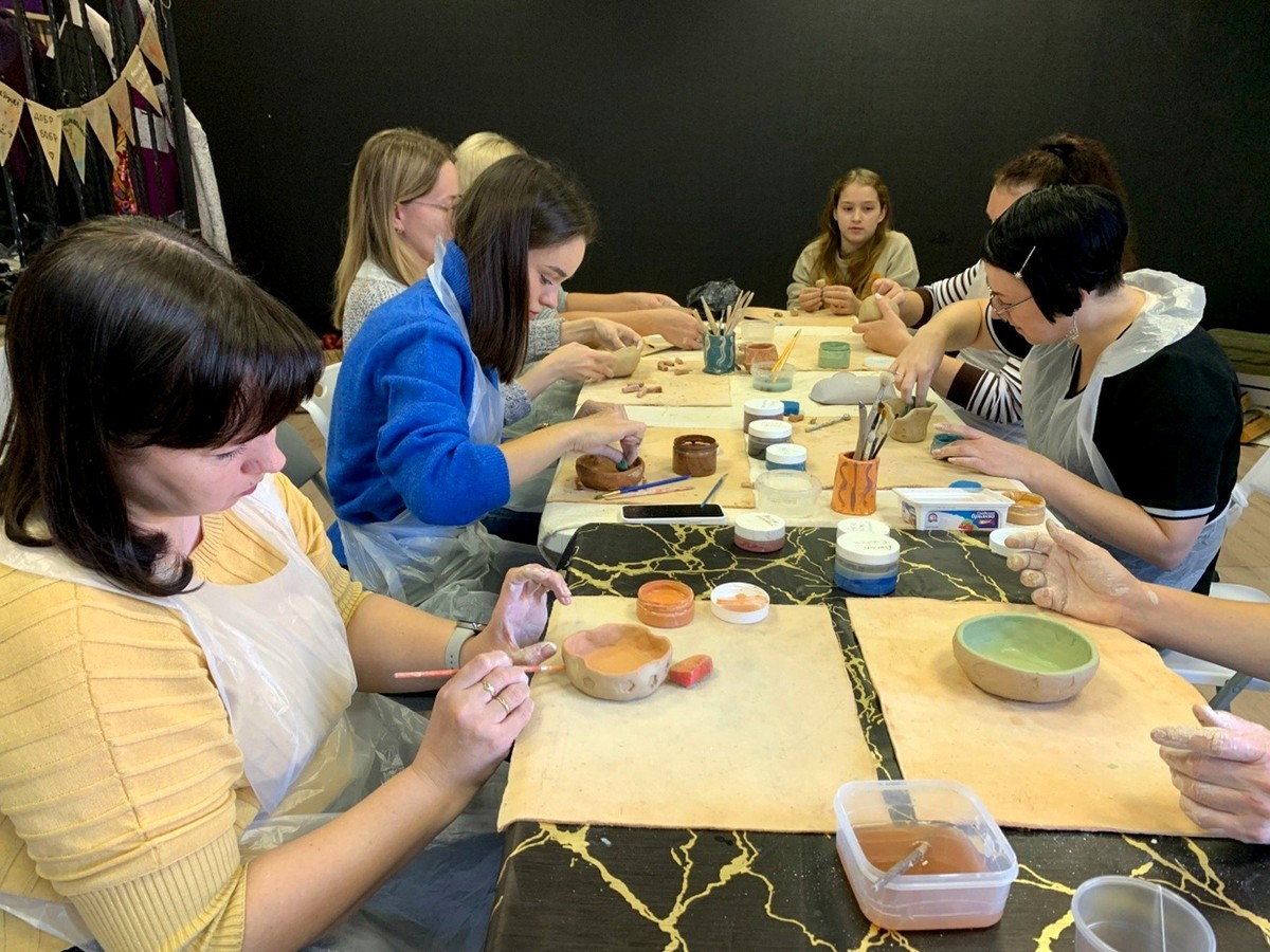 - Что включено: материалы, инструменты, покрытие глазурью, двойной обжиг