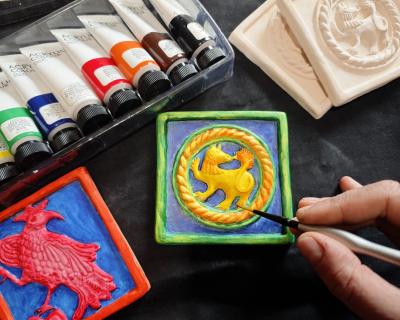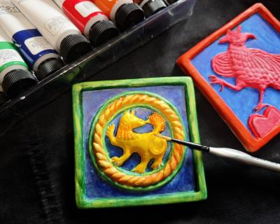 Создать из глины методом отминки традиционный изразец, расписать его акриловыми красками и увезти с собой кусочек традиций Псковских земель — вот что я вам предлагаю на моём мастер-классе. Расскажу об истории изразцов и помогу на каждом этапе творчества — от лепки до покрытия изделия защитным лаком.