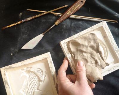 Я предложу вам выбрать одну из нескольких уникальных гипсовых форм. Методом отминки вы создадите из глины изразец — точную реплику псковской археологической находки 16 века.